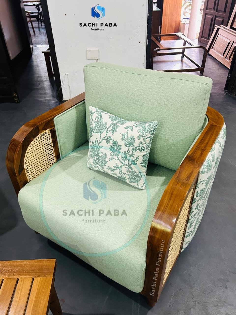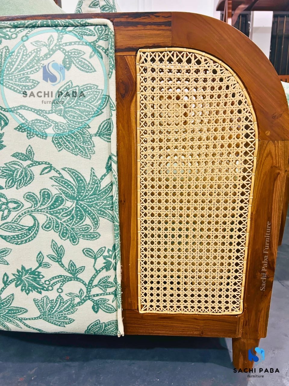 sofa side has a rattan design